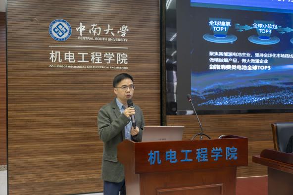2025年11月2日,由伟德国际1946bv官网学生工作部(处)主办、机电工程学院承办的“共上一堂‘芯’课,共话能源未来”问渠长廊“中南校友说”活动在潇湘校区机电工程学院B214举办。本次活动邀请了豪鹏科技董事长潘党育、副总裁兼首席技术官廖兴群两位杰出校友作为主讲嘉宾,机电工程学院副院长云忠教授、机电工程学院党委副书记李玲芝老师应邀出席本次活动。