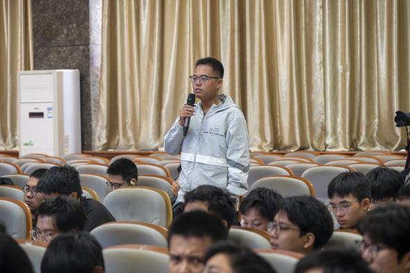 问答交流环节,现场师生围绕CVD法制备硅碳负极的产业化难题、正负极包覆技术差异、低空经济领域合、大学生能力培养等问题展开交流。廖兴群先生结合自身行业经验,给予相应回应,同学们纷纷表示受益匪浅,对新能源电池技术的前沿动态与产业未来也有了更深刻的理解。