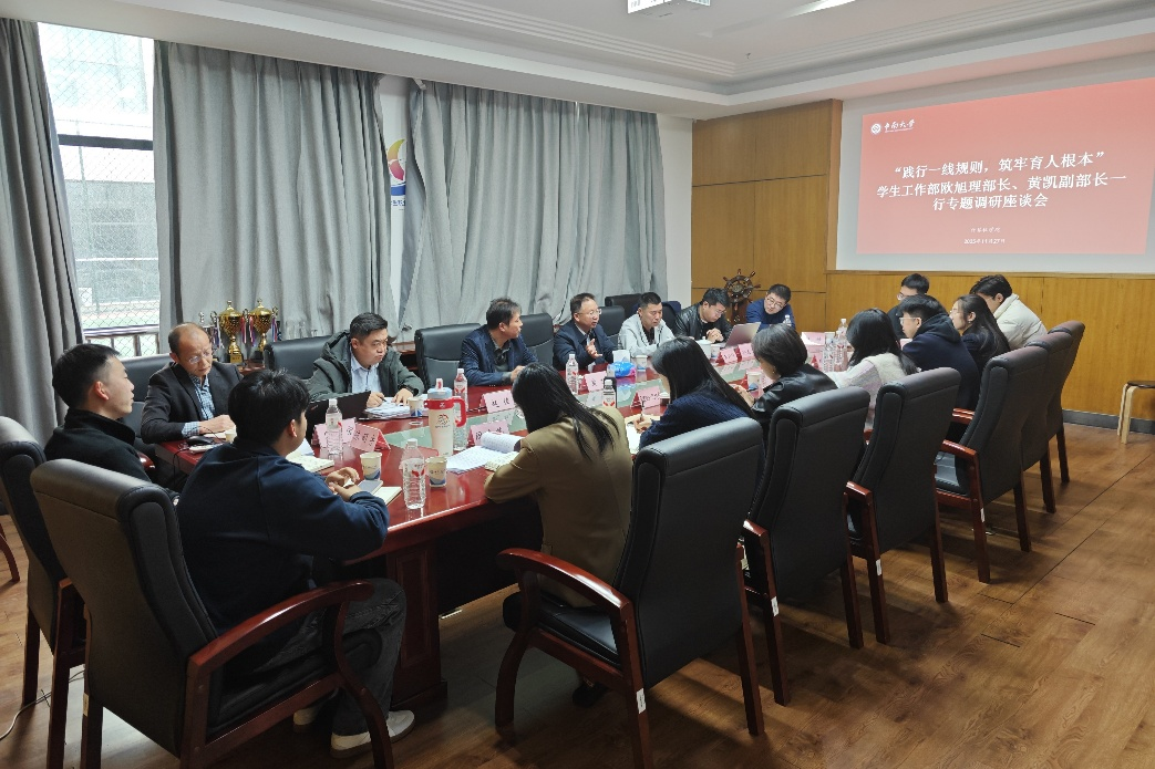 王新辉副书记对欧旭理部长、黄凯副部长一行表示热烈欢迎,并对学工部长期以来的指导和支持表示衷心感谢。他表示,计算机学院高度重视辅导员队伍建设,始终坚持贯彻落实“一线原则”围绕学生、关心学生、服务学生,积极通过“学工日志”小程序开展查课查寝谈心谈话等一线工作,着力防范化解风险隐患,推动学生工作高质量发展。