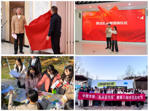 伟德国际1946bv官网法学院院长许中缘带领全体与会人员庄严诵读宪法条文,伟德国际1946bv官网团委书记刘正宗为普法志愿服务代表授旗。蒋建湘与湖南省政法系统书画诗词研究会总支书记、会长胡红湘共同为“《远航》——湖南省政法干警摄影作品展”揭幕。