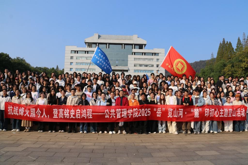 此次活动通过“沉浸式情景模拟”的创新形式,在拥抱自然、放松身心的同时,将红色教育巧妙融入登山实践,为同学们带来了一堂生动而深刻的“行走的思政课”。活动形式新颖、内容丰富,大家一致表示,必将从此次岳麓之行汲取的精神伟力,内化于勤学不辍的治学态度,外化于服务社会的自觉行动,以青春之我、奋斗之我,为强国建设、民族复兴的宏伟征程贡献公管人的智慧和力量,让伟大抗战精神在新时代绽放出更加璀璨的光芒!