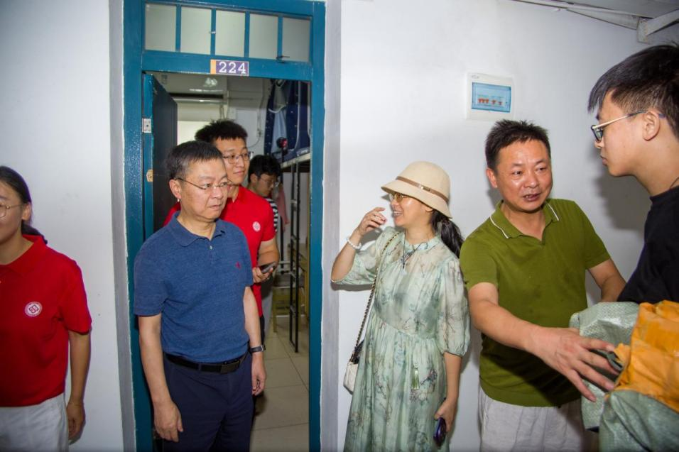 9月13日上午,院党委书记李磊、党委副书记纪晓飞与新生辅导员一行,深入新生宿舍,亲切看望已安顿下来的同学们。“家乡是哪里的?”“对学校的饮食和环境还适应吗?“生活上有没有什么困难?”每到一个寝室,院领导都与新生们进行亲切交谈,细致地询问他们的入住感受和适应情况,并认真查看各项设施是否完善,勉励大家要尽快转变角色,融入大学集体生活,珍惜室友缘分,相互关心,共同进步;同时要做好学业规划,夯实专业基础,不负青春韶华。