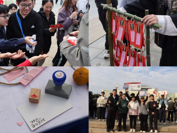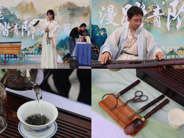 当日14时,师生们在岳麓山校区图书馆前侧草坪集合签到,领取国风集章卡,参与简短的启动仪式。欣赏了古琴演奏、茶艺展示、汉服走秀等精彩展演,部分师生还参与了古琴体验教学,在高山流水间感受传统艺术的独特魅力。 登山途中,两大特色打卡点巧妙融入传统文化元素,各具特色。“汉服雅韵”点位上,师生与身着襦裙、披风的汉服社成员合影互动,参与国风知识问答;“国风雅趣”点位中,飞花令、你画我猜等趣味游戏,围绕“岳”“麓”“茶”“琴”等主题词展开比拼,让大家在协作中感受诗词魅力与文化智慧。