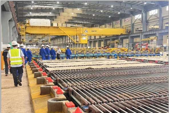 下午,学院领导主动要求与实习师生团队一起,深入铜电解生产现场进行学习互动。参观了铜电解液循环系统、电解槽运行现场以及电解阳极泥处理等关键工序,零距离感受了现代化铜冶炼生产的技术革新。