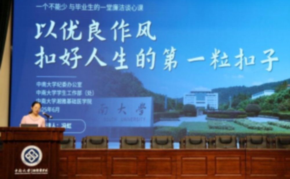 毕业典礼前,冯虹副书记为2025年全体毕业生和学院全体学生党员做了《以优良作风 扣好人生的第一粒扣子》主题宣讲,冯虹副书记从三个方面进行生动讲解,号召同学们扣好廉洁自律扣子,时刻自重自省自警自励,厚植爱国情怀,践行使命担当,在实干中建功立业,争做崇廉尚洁、品德高尚、担当有为的新时代好青年。