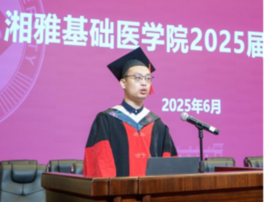 本科生代表央新雨、优秀毕业研究生党员代表张祥彦先后发言。央新雨说道:作为一名退役大学生,摸爬滚打的训练教会他坚毅,实验室的微光指引他前行,未来他将带着这份坚韧与信念,继续在医学的道路上奋勇前行。博士毕业生张祥彦表示,在即将踏上新征程之际,我们要清醒认识自己肩负的时代使命,湘雅人要努力成为推动医学进步、守护人民健康的栋梁之才!