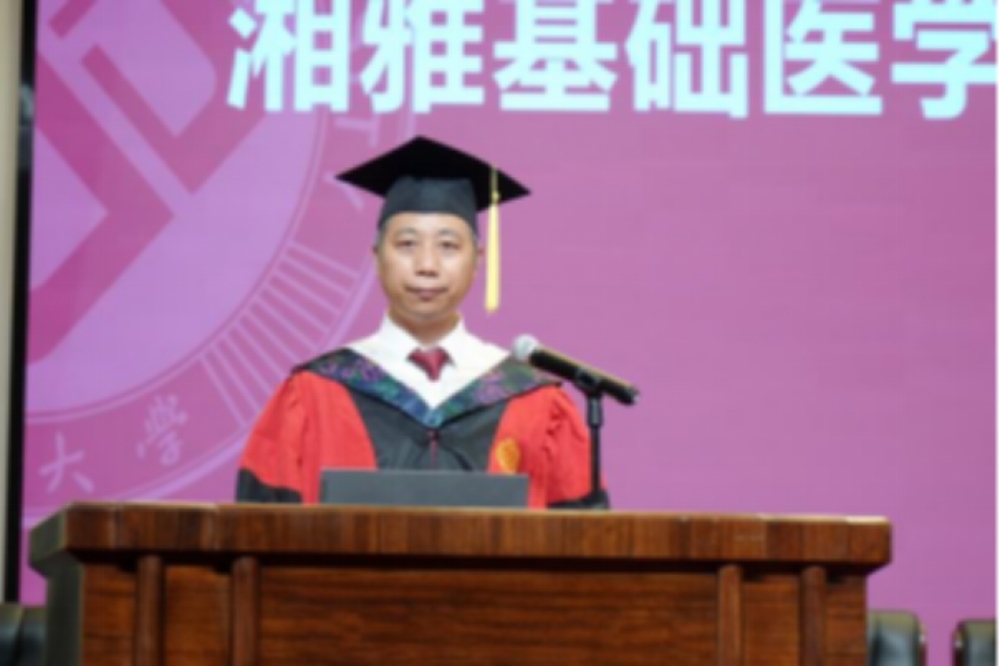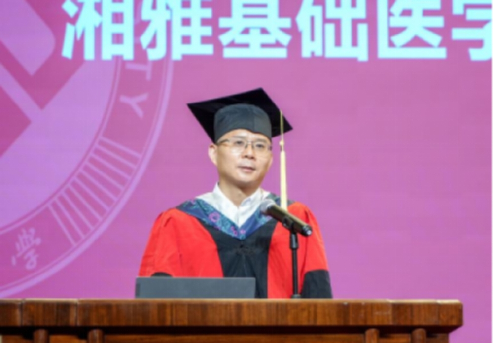 教师代表郭亚东教授从湘雅校友、学院导师及行政管理者三个身份,用一腔热情洋溢的肺腑之言,为毕业生送上真挚祝福,并寄语毕业生要牢记“公勇勤慎、诚爱谦廉、求真求确、必邃必专”的湘雅精神。