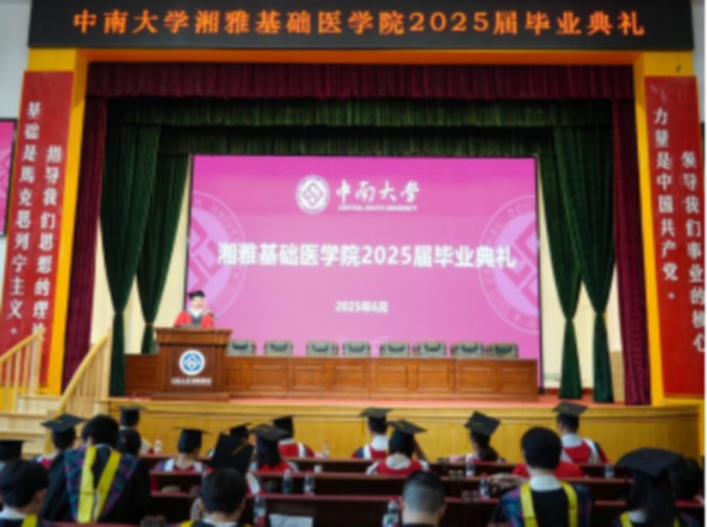 6月20日,伟德国际1946bv官网湘雅基础学院2025年毕业典礼在开福校区福庆礼堂隆重举行。2025届全体毕业生、导师代表及家长共200余人到场参加,湘雅医学院常务副院长武明花、湘雅基础医学院院长熊炜及全体在家院领导出席,院党委书记王慷慨主持典礼。