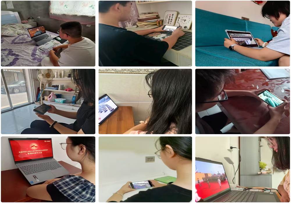 活动得到了新生及家长的广泛响应和热烈支持。9月3日上午9时,学院一百余名2025级新生虽身处全国各地,却通过网络平台实现了同屏观看。当铿锵有力的步伐声响起,当现代化装备方阵巍然驶过,当战机翱翔划破长空,新生们的自豪感与使命感在直播间评论区、QQ群里澎湃交织。许多新生在观看后自发提交了心得体会。来自澳门的2025级本科新生陈韵霖表示:“阅兵仪式,阅的既是铁血战士的英雄气概,也是中华儿女的爱国柔情。作为一名来自澳门的同学,听到战士们铿锵有力的呐喊,感受到祖国山河锦绣,盛世辉煌,更加为自己中华儿女的身份自豪,也坚定了身体力行中南校训,争做新时代好青年的决心”