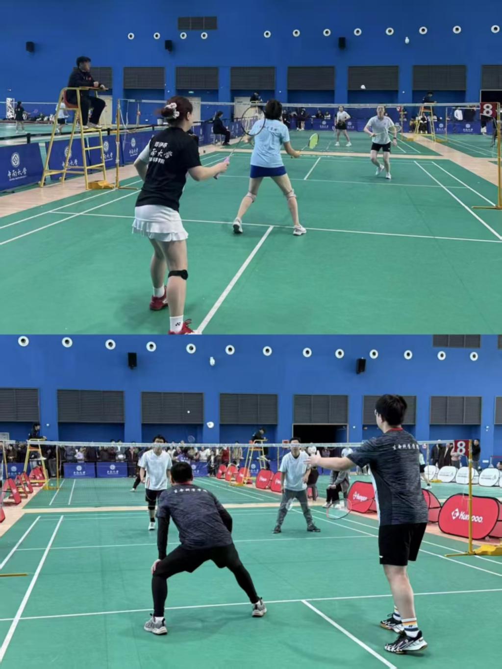 比赛过程中,生命科学学院代表队展现出良好的竞技状态和顽强拼搏精神。无论是经验丰富的教师队员,还是充满活力的学生选手,都高度投入每一场对决。在关键的八强赛男子双打比赛中,队员们凭借坚韧的耐力和精准的进攻,在决胜局上演逆风翻盘;在女子双打项目中,选手之间配合默契、战术灵活,连续击败强劲对手,为团队赢得关键分数。尤其是在数场胶着对抗中,队员们始终保持冷静沉着,展现出良好的心理素质和强大的团队凝聚力。
