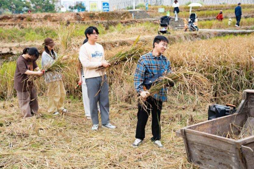 随后,同学们来到博物馆旁的实践田里,亲自下田,体验了从收割、脱粒到制作稻草人的全过程。这一系列亲身体验,将农耕文化的厚重与趣味性融为一体,让每一位参与者收获了对于“一份耕耘一份收获”最为鲜活和深刻的理解。